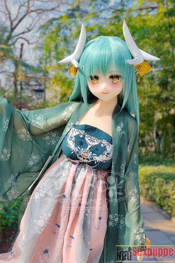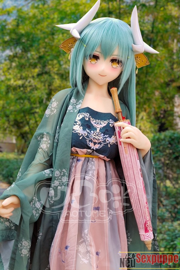 Sie war eine japanische Singer-Songwriterin, die ein langes grünes Kleid im antiken Stil trug, als wäre sie eine Fee, die einer Schriftrolle entstiegen ist. Ihre Figur ist kurvenreich, das lange grasgrüne Haar fällt ihr sanft über die Schultern, und auf dem Kopf trägt sie ein Paar zarte weiße Geweihverzierungen, die ihr einen Hauch von Verspieltheit verleihen. Es handelt sich um eine stilisierte Anime Sexpuppe, die erst kürzlich in das Sortiment von Aotume Doll aufgenommen wurde. In ihrer Hand hält sie einen roten Fächer und schwingt ihn sanft. Sie zieht viel Aufmerksamkeit auf sich, wenn sie im Park erscheint. Sie geht leichtfüßig, als ob sie tanzen würde, und ist sehr anmutig. Ihr Gesicht war hell und schön, ihre weiße Haut strahlte einen reinen Glanz aus. Ihre Augen waren tief und hell, als ob Sterne darin funkelten. Wenn sie lächelte, wölbten sich ihre Augen zu zwei hellen Halbmonden und vermittelten den Menschen ein Gefühl von Wärme und Gelassenheit. Diese lebensgroße Sexpuppe ist im Anime-Stil gehalten, aber ihr Körper ist genauso voller lebendiger Energie wie der einer echten Frau. Die Standard-Körperform ermöglicht es Ihnen, ihre Pose leicht anzupassen. Das Bild zeigt Ihnen das Vollsilikonmaterial, natürlich können Sie auch das TPE-Material wählen.