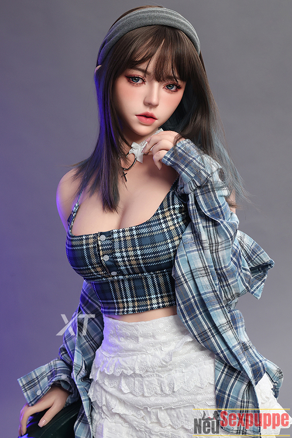 Insgesamt ist Rinos Aussehen wirklich auffällig. Sie hat exquisite, zarte Gesichtszüge, eine rosige Hautfarbe und volle Lippen, ergänzt durch große, ausdrucksstarke Augen, die einen in ihren Bann ziehen. Die Kleidung dieser Lifelike Sex Doll ist bemerkenswert realistisch. Sie trägt ein blaugraues Haarband, ein kariertes Neckholder-Top und ein kariertes Hemd über einem weißen Stufenkleid und präsentiert sich damit verspielt und voller jugendlicher Vitalität.