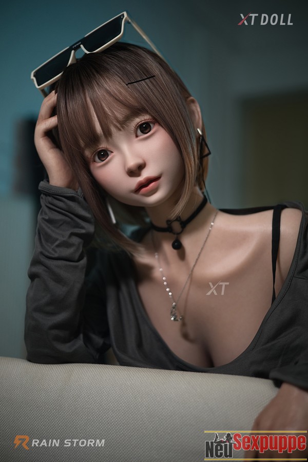 Dies ist eine Teen Sexpuppe, die sowohl stilvoll als auch niedlich ist. Die kurzen hellbraunen Haare, die übertriebenen Ohrringe, die vielen kettenartigen Accessoires, die gut zu dem grauen Outfit passen, und die Hasenpuppe, die an einer Socke hängt, strahlen alle Jugendlichkeit aus.